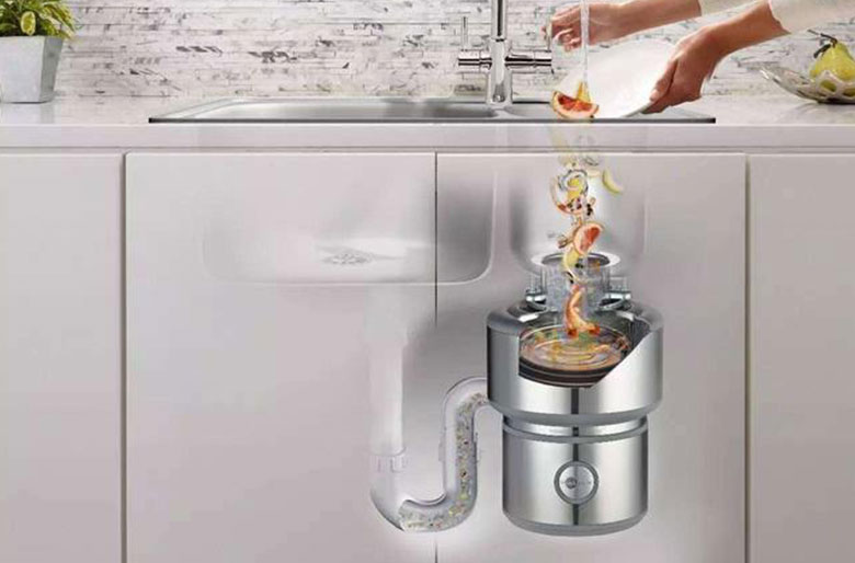 垃圾处理器集成于水池下水口,水池上方装有按钮式的空气开关。食品垃圾(剩菜、剩饭、骨头、鱼刺等)可直接倒入垃圾处理器内后,按下空气开关后垃圾处理器开始工作,将食品垃圾打碎并冲入下水道,再次按下空气开关后即可关闭垃圾处理器工作,操作便捷。
